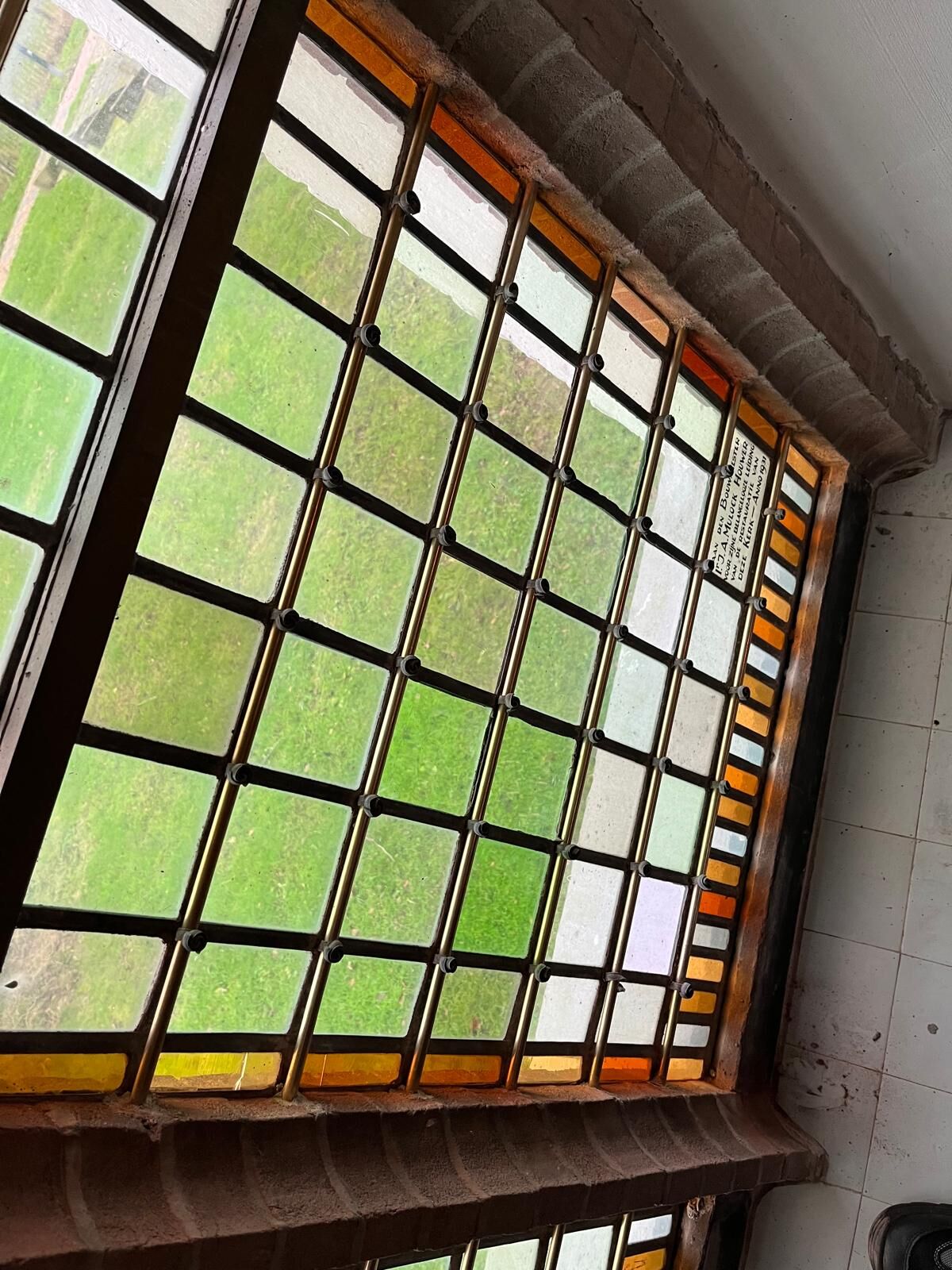 Deze windijzers zorgen ervoor dat het glas in lood niet doorbuigt bij winddruk.